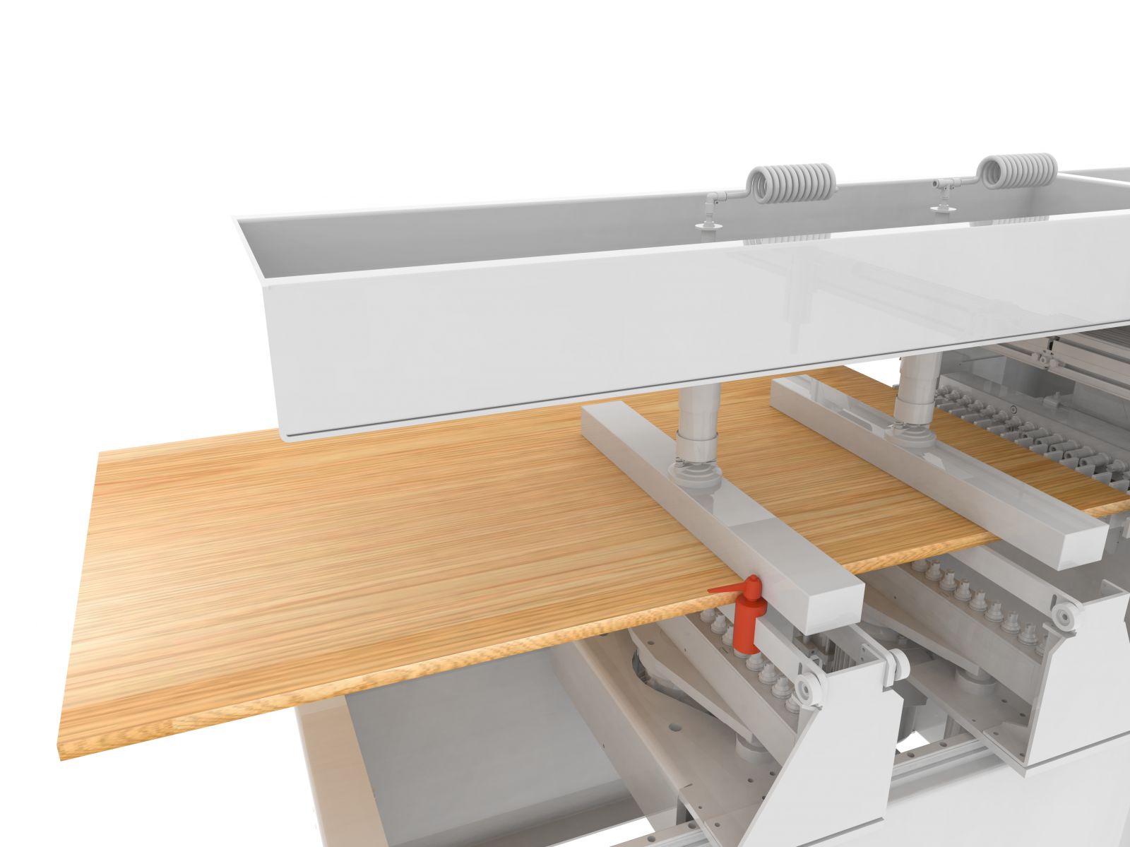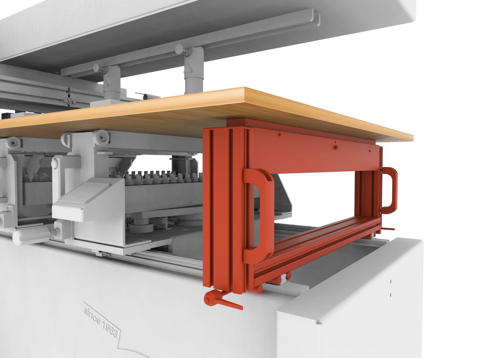 Easy positioning of the long panels thanks to the "Cantilever" structure and to the wide and solid holding tables made of steel. The panel drive is on the front side, easily accessible for the operator.