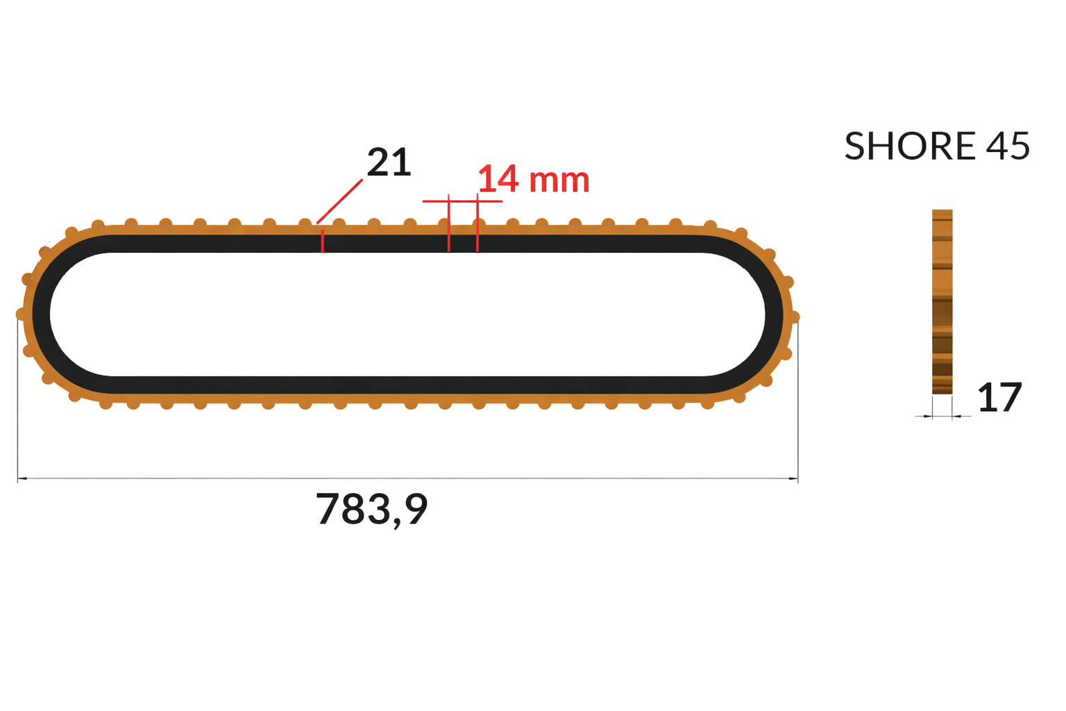 A set of n°3 Patented "Feeder Grip 758" toothed belts for Steff 2039-CI, dimensions : 17x21x830 mm / 45 shore, best suited for smooth surfaces ( finished wood)