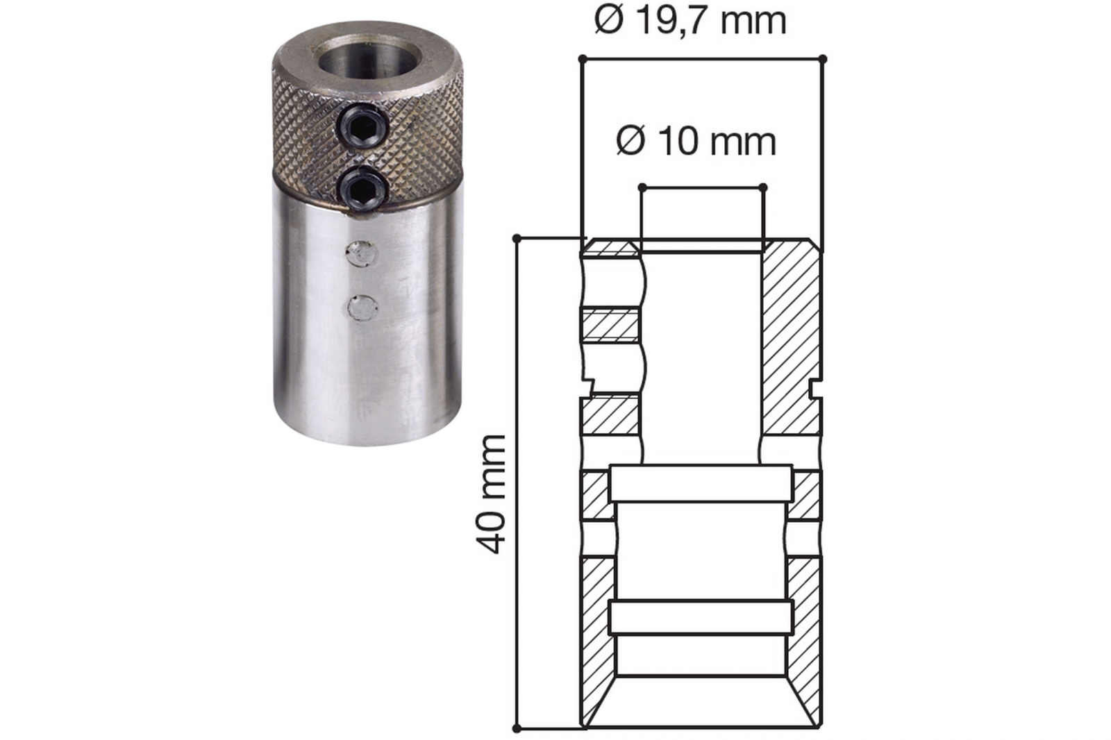 Basta un click per montare la bussola, con la punta già inserita, sulla testa della foratrice
